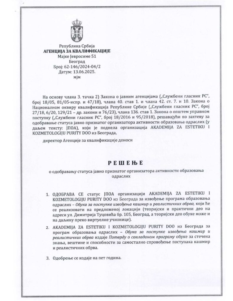 Obuka za postupke izvođenja kašmir i realističnih obrva