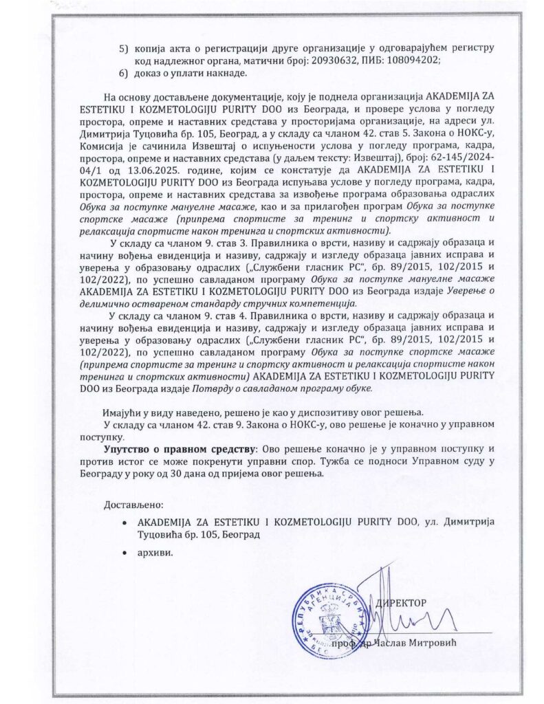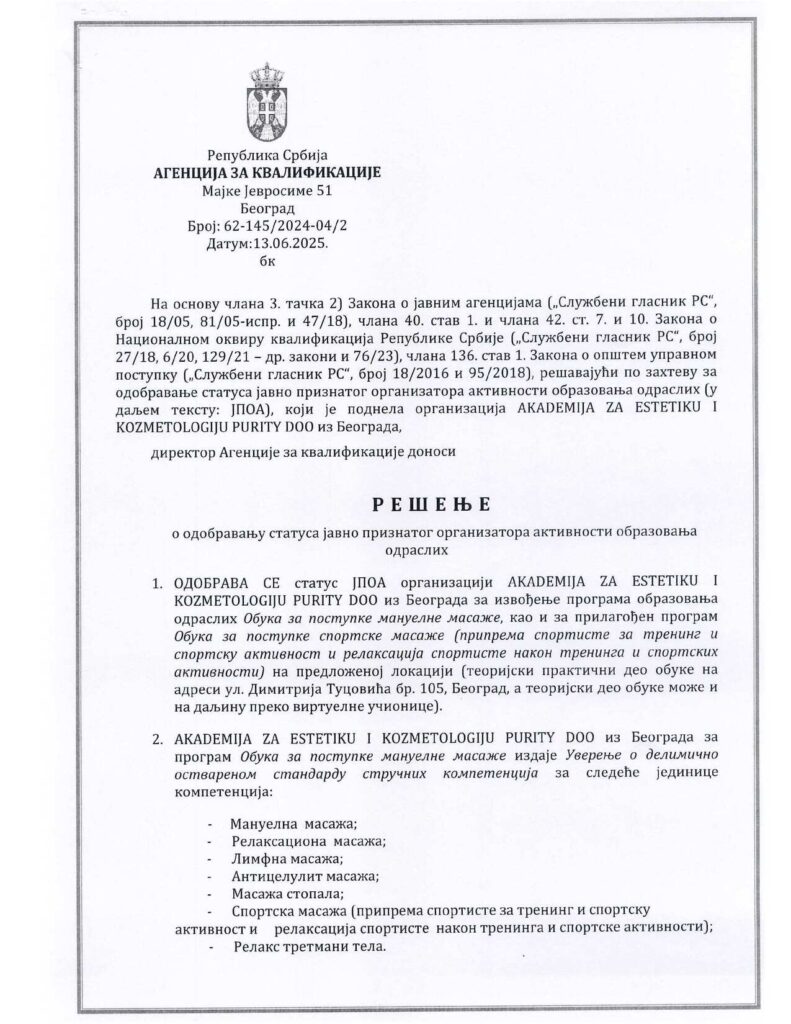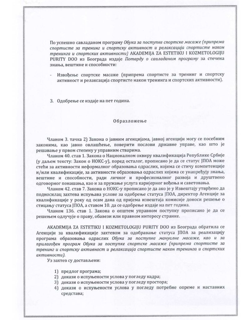 Obuka za postupke manuelne masaže i Obuka za postupke sportske masaže