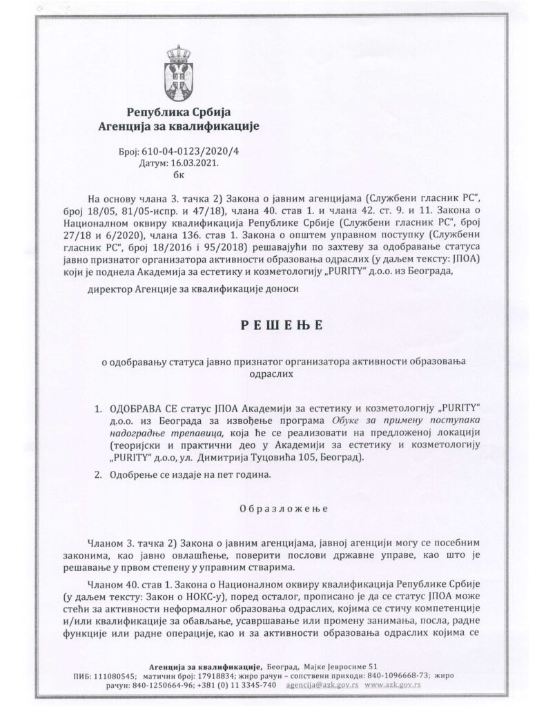 Obuka za primenu postupaka nadogradnje trepavica Akreditacija