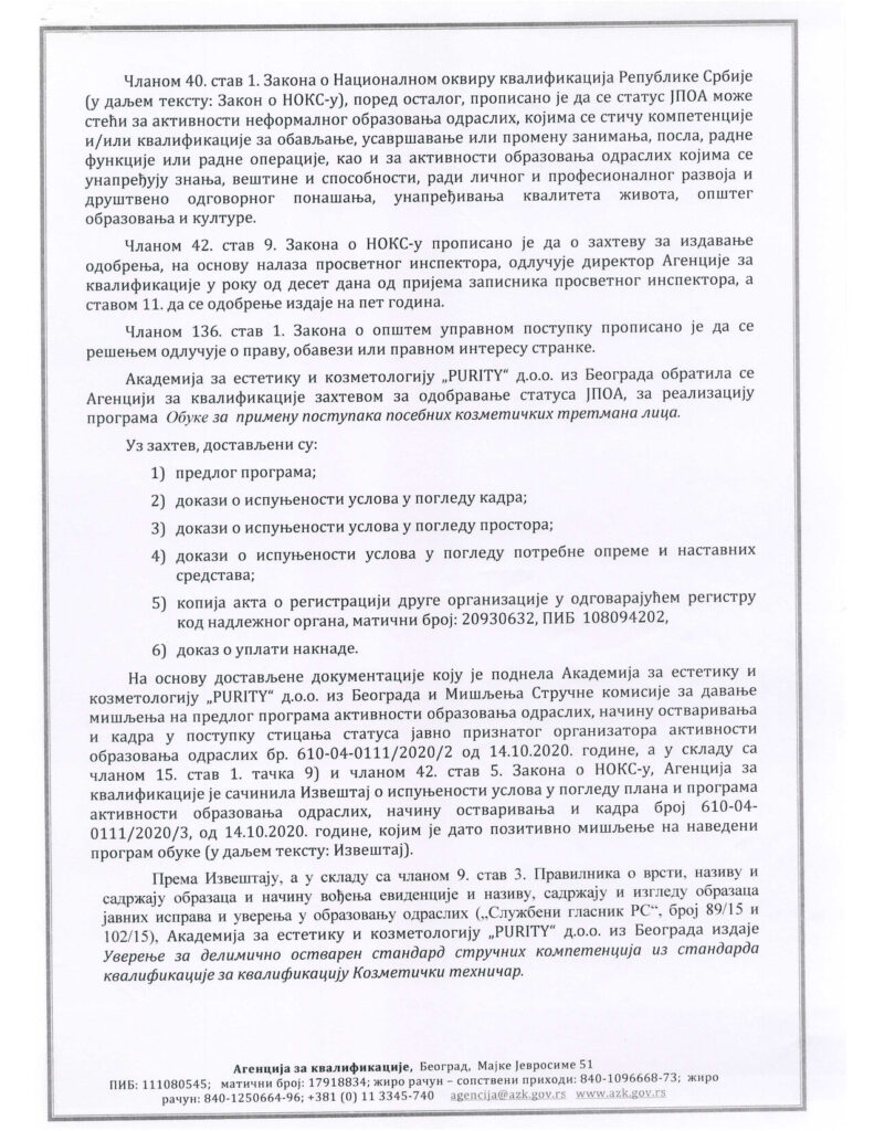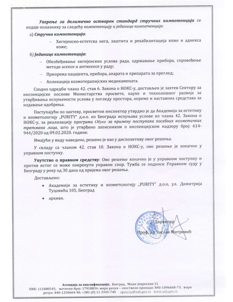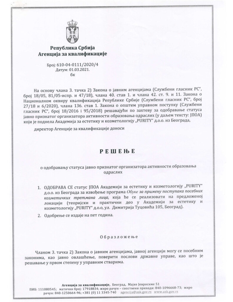 Obuka za primenu postupaka posebnih kozmetičkih tretmana lica Akreditacija