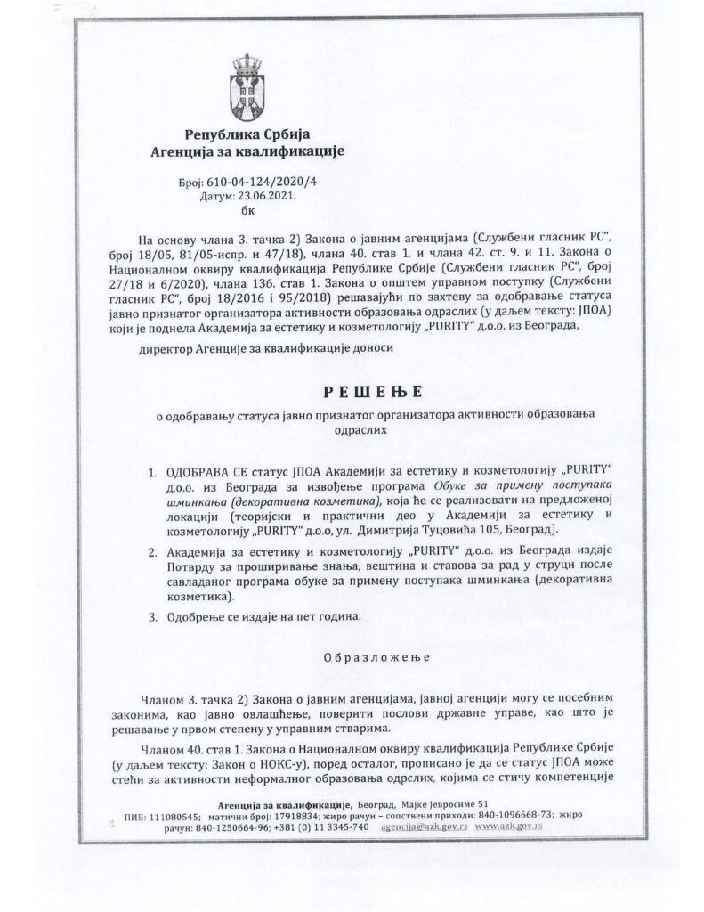 Obuka za primenu postupaka šminkanja (dekorativna kozmetika) Akreditacija